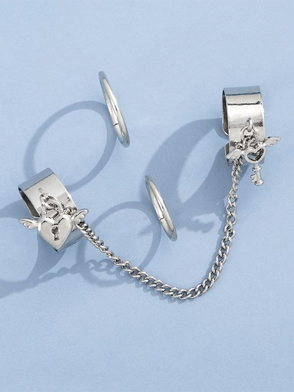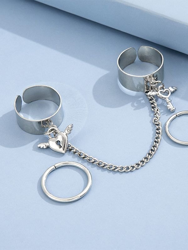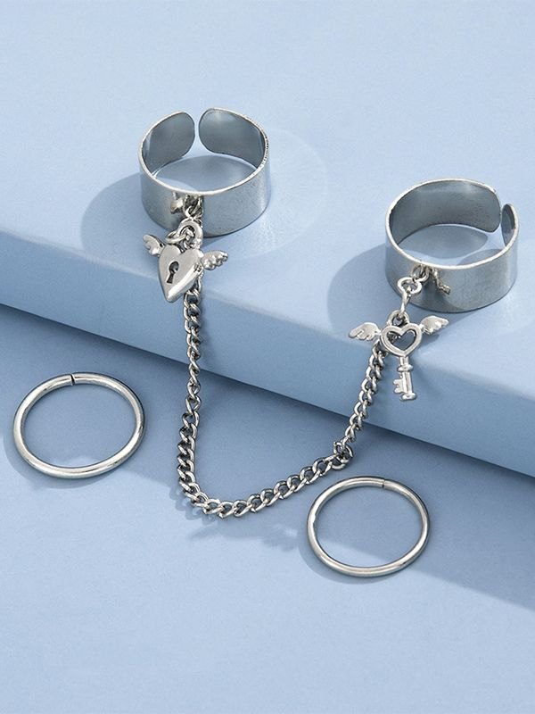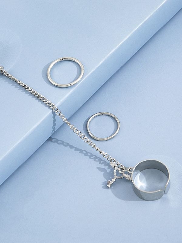 Details: With 1pc chain embellished double ring& 2pcs simple ring set