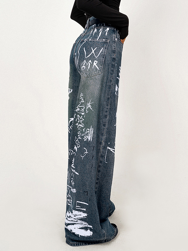 Be the first to review “Distressed Random Graffiti Print Boyfriend Jeans”