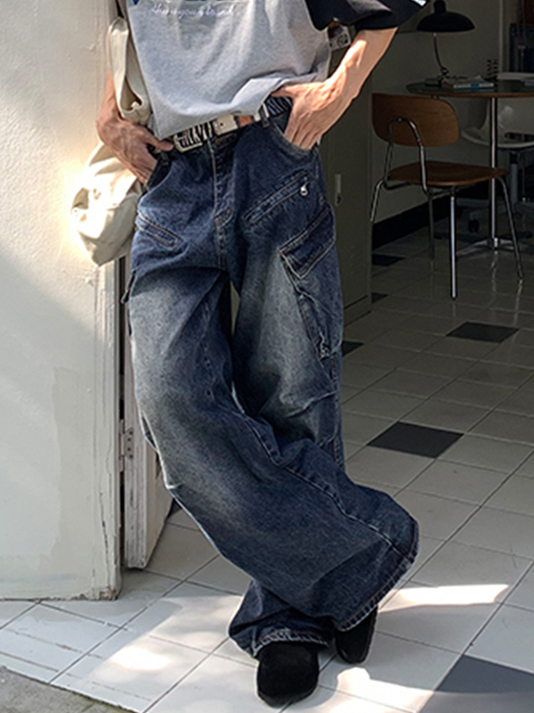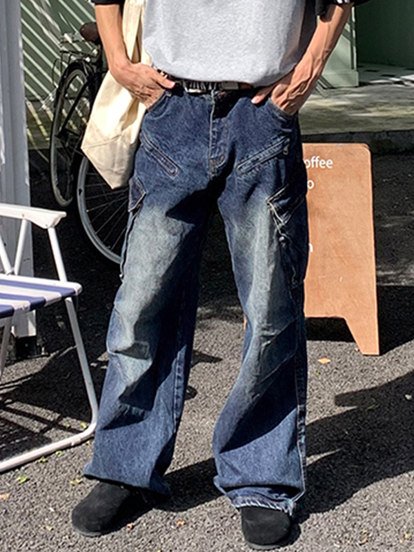 Men’s Washed Distressed Side Big Pocket Cargo Jeans