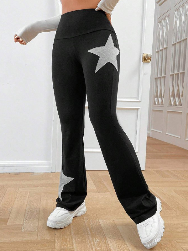 Unique Design: These flare leg pants feature a unique star print design, giving them a vintage and punk look that stands out from typical pants.