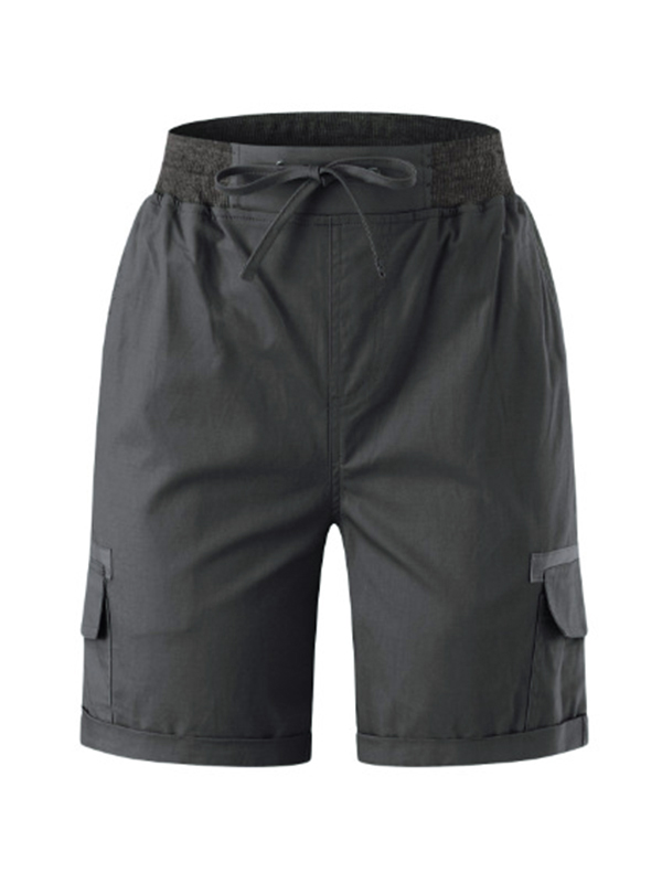 Be the first to review “Solid Elastic Waist Multi Pocket Drawstring Shorts”