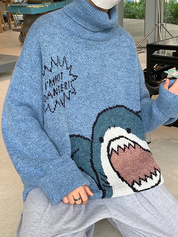 Description: These such cute jumpers for teenagers cut to a fitted silhouette, with cartoon shark& letter pattern featuring, and has dropped shoulders design.