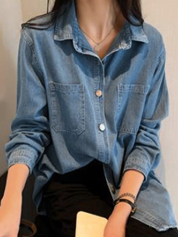 Be the first to review “Vintage Light Blue Denim Blouses&Shirts”
