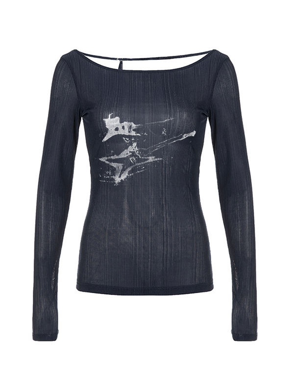 Be the first to review “Guitar Print Off Shoulder Long Sleeve Knit”