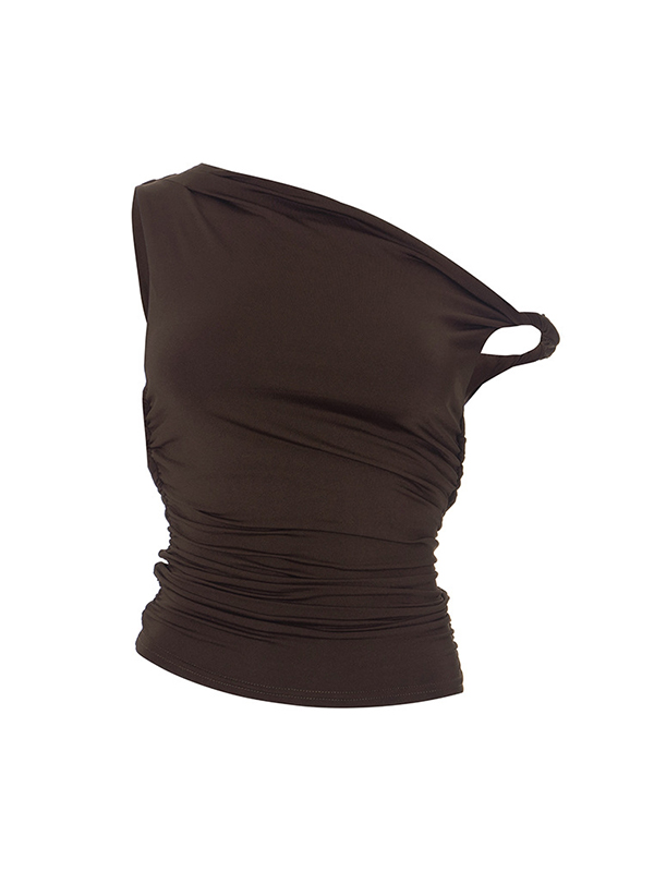 Be the first to review “Solid One Shoulder Pleated Asymmetric Tank Top”