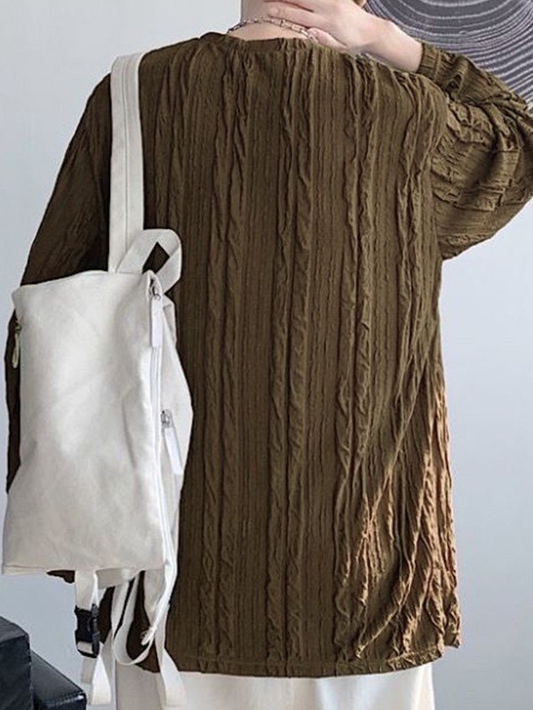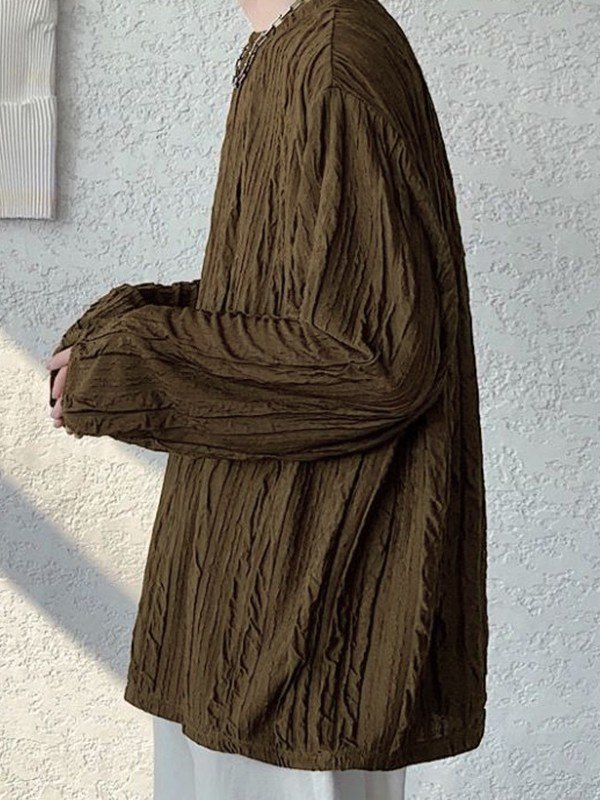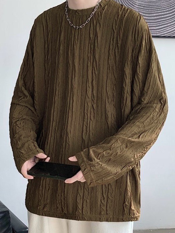 Description: Updated some versatile long-sleeve tees for staple interior outfits. This tee for mens shaped to a fitted silhouette, and has ruched texture design through the body.