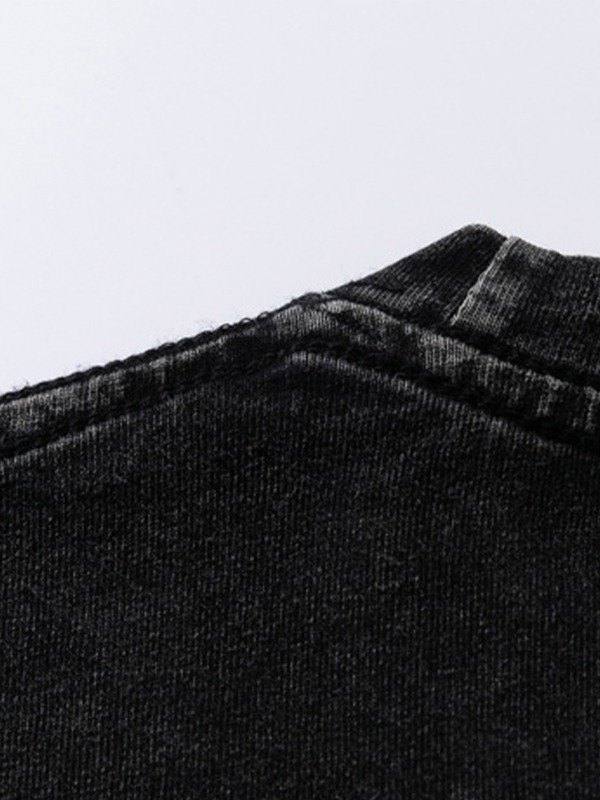 Description: This vintage wash graphic tee made from cotton fabric, shaped to a relax silhouette, with fragile skull letter pattern featuring design.