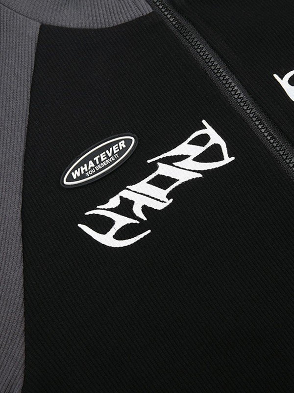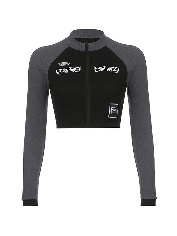 Be the first to review “Patchwork Zip Up Long Sleeve Crop Top”
