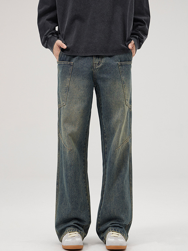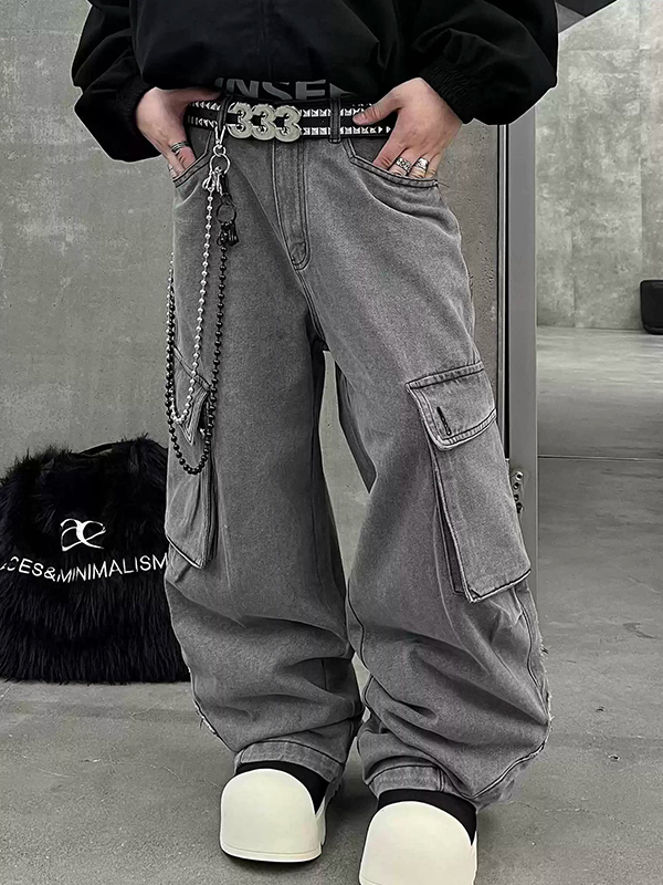 Men’s Vintage Distressed Wash Multi Pocket Cargo Pants