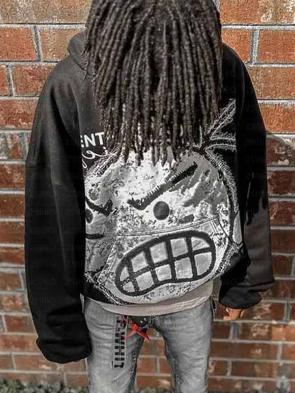 Men’s Double Zipper Metal Button Oversized Hoodie