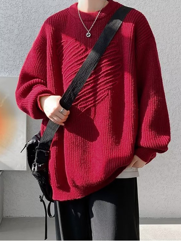 Men’s Three-dimensional Heart Decor Crew Neck Sweater