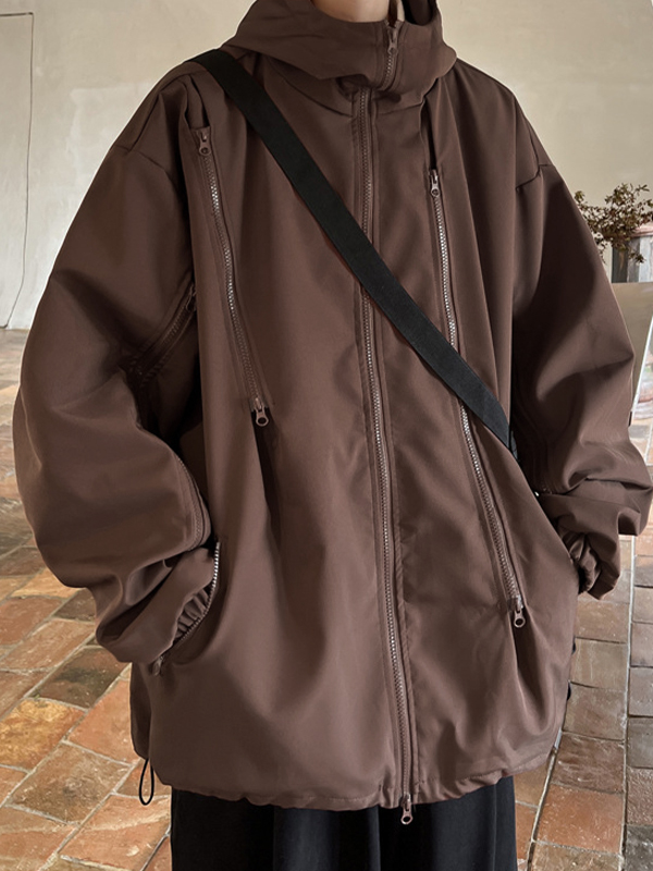 Men’s Gorpcore Solid Zipper Drawstring Jacket