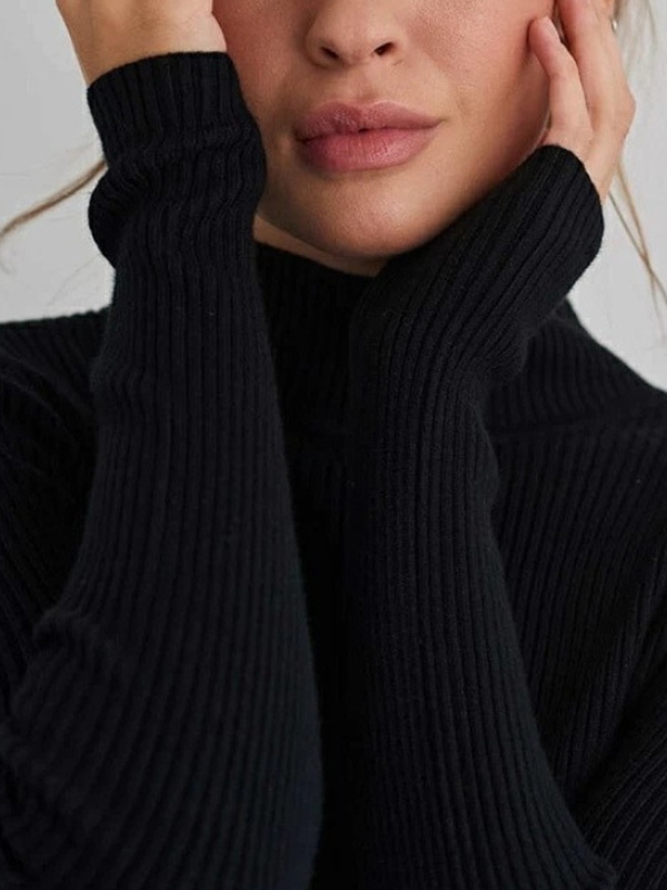 Vintage Print Seam Detail Ribbed Long Sleeve Knit