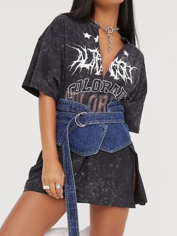 V Neck Letter Print Oversized Short Sleeve Tee